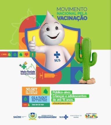 Quixeramobim está unida ao Movimento Nacional de Vacinação, e de 30 de setembro a 11 de outubro, estaremos prontos para proteger nossas crianças e adolescentes contra doenças graves. Traga seu filho, sobrinho, neto, afilhado, ou qualquer criança ou adolescente de até 15 anos para a Unidade Básica de Saúde mais perto da sua casa e […]