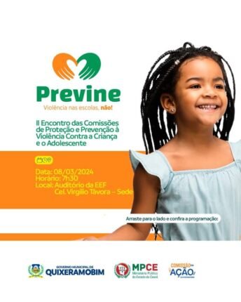 Na próxima sexta-feira (8), a Secretaria de Educação de Quixeramobim vai promover o II Encontro das Comissões de Proteção e Prevenção à Violência Contra a Criança e Adolescentes, com o objetivo de fortalecer a proteção e a prevenção de casos violência nas escolas. O evento contará com a presença do presidente da Comissão de Direitos […]