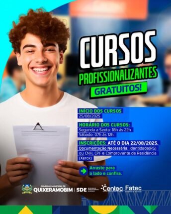 Quixeramobim oferece 280 vagas em cursos profissionalizantes gratuitos.
