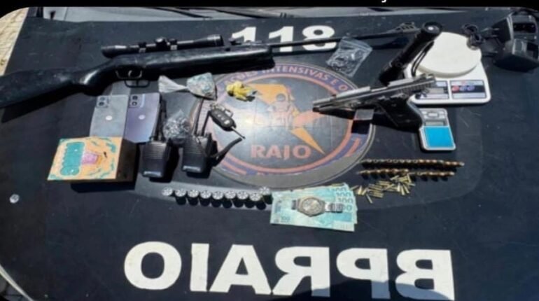 Homem é preso com armas, drogas e tenta subornar policiais com R$ 20 mil em Pedra Branca.