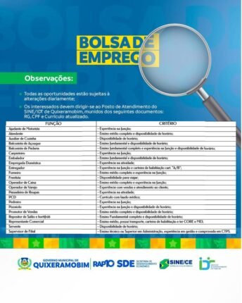 Bolsa de emprego em Quixeramobim.