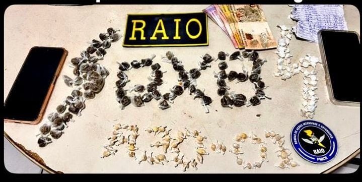 Três pessoas são presas por tráfico de drogas em Quixeramobim; polícia apreende dinheiro e drogas.