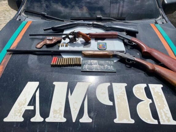 A Polícia Militar do Ceará (PMCE), por meio do Batalhão de Polícia do Meio Ambiente (BPMA), apreendeu quatro armas de fogo e munições durante uma ação realizada na manhã deste sábado (18), na zona rural de Senador Pompeu. A ocorrência foi registrada no Sítio Massapê, área conhecida pelo alto índice de caça ilegal de animais […]