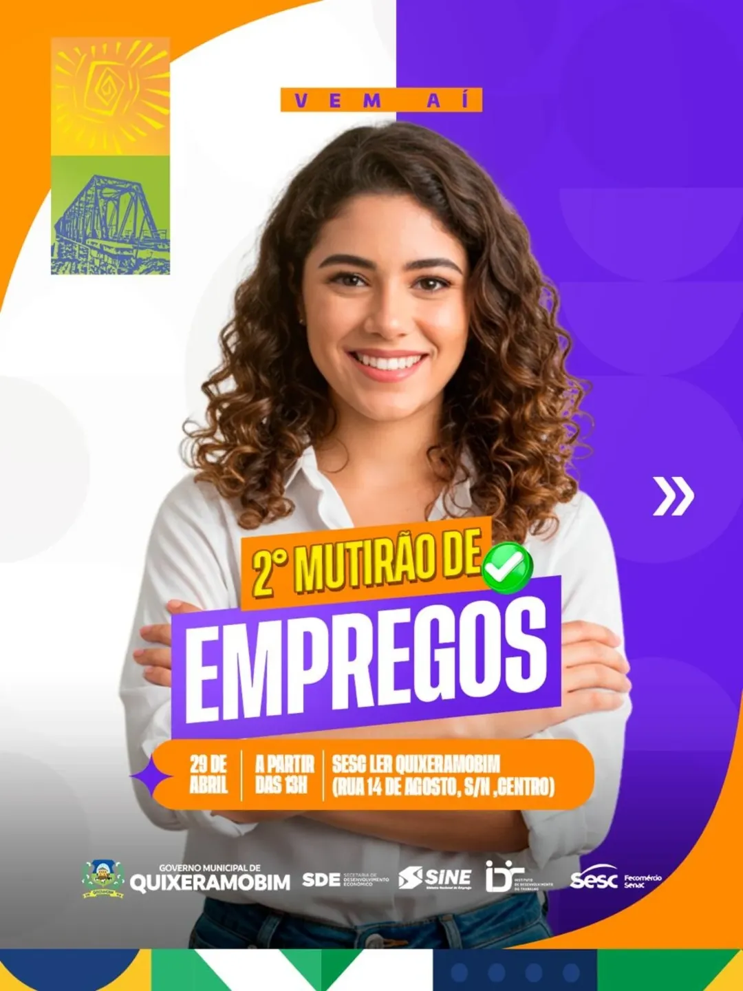 Quixeramobim receberá, no próximo dia 29 de abril, a segunda edição do Mutirão de Empregos, iniciativa voltada à promoção de oportunidades de trabalho e qualificação profissional na região. O evento será realizado a partir das 13h, no Sesc Ler do município.
