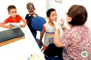 Com realização de escovação supervisionada e ações de prevenção.