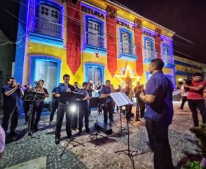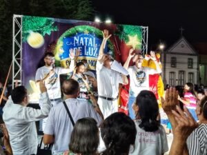 A Banda de Música Sebastião Doth recepcionou o cortejo em seu destino, onde foram realizadas a benção ecumênica com o Padre Bruno, além da entrega da chave da cidade ao Papai Noel, seguido pela apresentação do Coral Aníbal Roberto Carneiro, que encantou todos que estavam presentes.