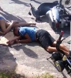 De imediato a equipe se deslocou até o local, e ao chegar, constatou a veracidade do fato. Segundo informações, um homem, estava trafegando na Rua Antônio de Castro em uma moto HONDA/CG 125 FAN, de cor preta, placa HYW3421, quando um casal teria avançando a preferencial em uma HONDA/BIZ 125 KS, de cor prata, placa HYA8907, vindo a colidir com o mesmo.