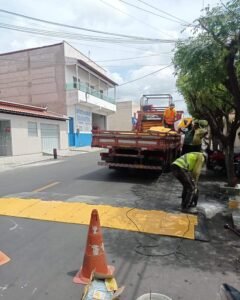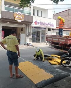 A Autarquia Municipal de Trânsito de Quixeramobim iniciou nesta sexta-feira (25) a instalação de uma nova lombada ecológica na Rua José Campos Torquato.
