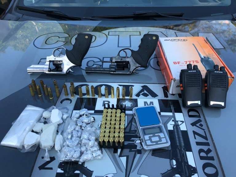 Abordagem do Cotam resulta nas apreensões de armas de fogo, drogas e rádios na Capital.