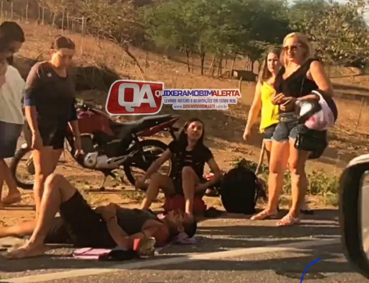 Veja o vídeo: Colisão entre duas motocicletas deixa três pessoas feridas na CE 060 em Quixeramobim.