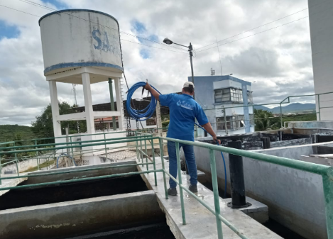 Equipe do SAAE de Quixeramobim realiza limpeza de ETA no município.