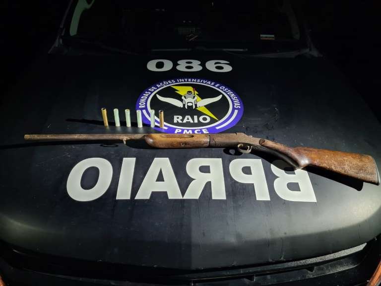 Após denúncia de indivíduo armado, CPRAIO apreende espingarda na cidade de Jaguaribe-CE.