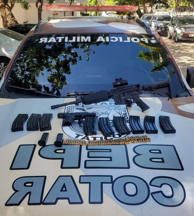 Um fuzil, uma pistola e 60 munições de calibres variados foram apreendidos pelo Batalhão Especializado de Policiamento do Interior (Bepi) da Polícia Militar do Ceará (PMCE), nesta quinta-feira (17). A ofensiva, iniciada na cidade de Boa Viagem, se estendeu até Fortaleza. Dois homens foram presos, entre eles, um foragido da Justiça alvo da Operação Annulare da Polícia Civil do Estado do Ceará (PC-CE), ocorrida em 2021, que iniciou após a captura de Valeska Pereira Monteiro, conhecida como “Majestade”.