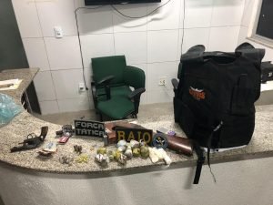 Diante da informação foi feito o deslocamento a residência localizado na Rua do corredor, Bairro Triângulo, juntamente com Raio 04 e a força tática, foi feito o cerco e anunciado a presença da Polícia e consequentemente foi visto um casal, os mesmo tentaram se evadir, então foi ingressado a residência e dentro do imóvel foi encontrado um revólver calibre 32, municiado uma espingarda cal. 12 e uma quantidade de maconha e crack e duas munições de cal. 32. Todo o material apreendido foi conduzido à delegacia regional de polícia civil.