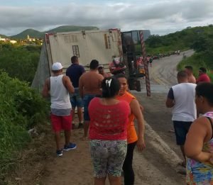De acordo com informações, um caminhão carregado de refrigerante tombou em uma curva, após o pneu do veículo estoura. O motorista do caminhão foi identificado como Bruno.