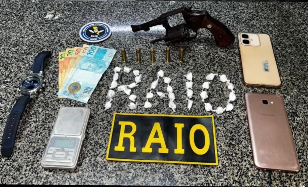Durante a abordagem, os policiais encontraram com o homem, de 39 anos, um revólver calibre 38 com cinco munições intactas. Em seguida, foram realizadas buscas nas proximidades, sendo localizada uma quantidade de cocaína.