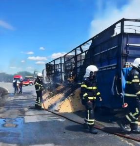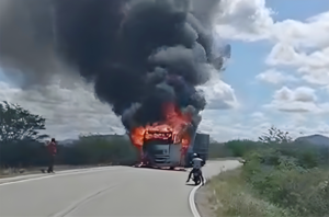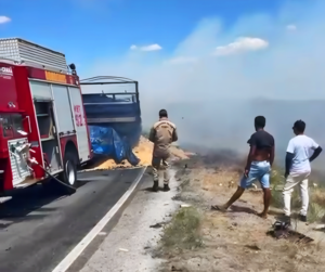 Segundo informações preliminares repassadas ao portal Ceará Alerta, uma motocicleta colidiu frontalmente com uma carreta carregada. Com o forte impacto, os veículos pegaram fogo, resultando em um incêndio de grandes proporções que carbonizou completamente a moto e parte da carreta.