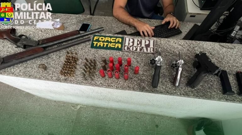 Operação policial prende quatro suspeitos e apreende arsenal em Ibicuitinga.
