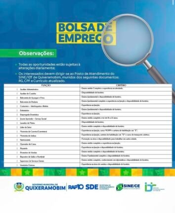 Bolsa de emprego em Quixeramobim.
