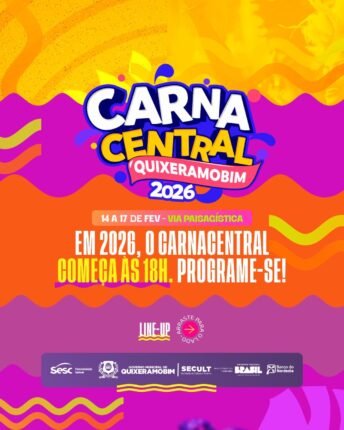 A Prefeitura de Quixeramobim divulgou oficialmente a programação completa do Carnacentral 2026, que promete movimentar o município com quatro dias de muita música e animação. O evento será realizado de 14 a 17 de fevereiro, na tradicional Via Paisagística, que deve se transformar no principal ponto de encontro dos foliões durante o período carnavalesco. Com […]
