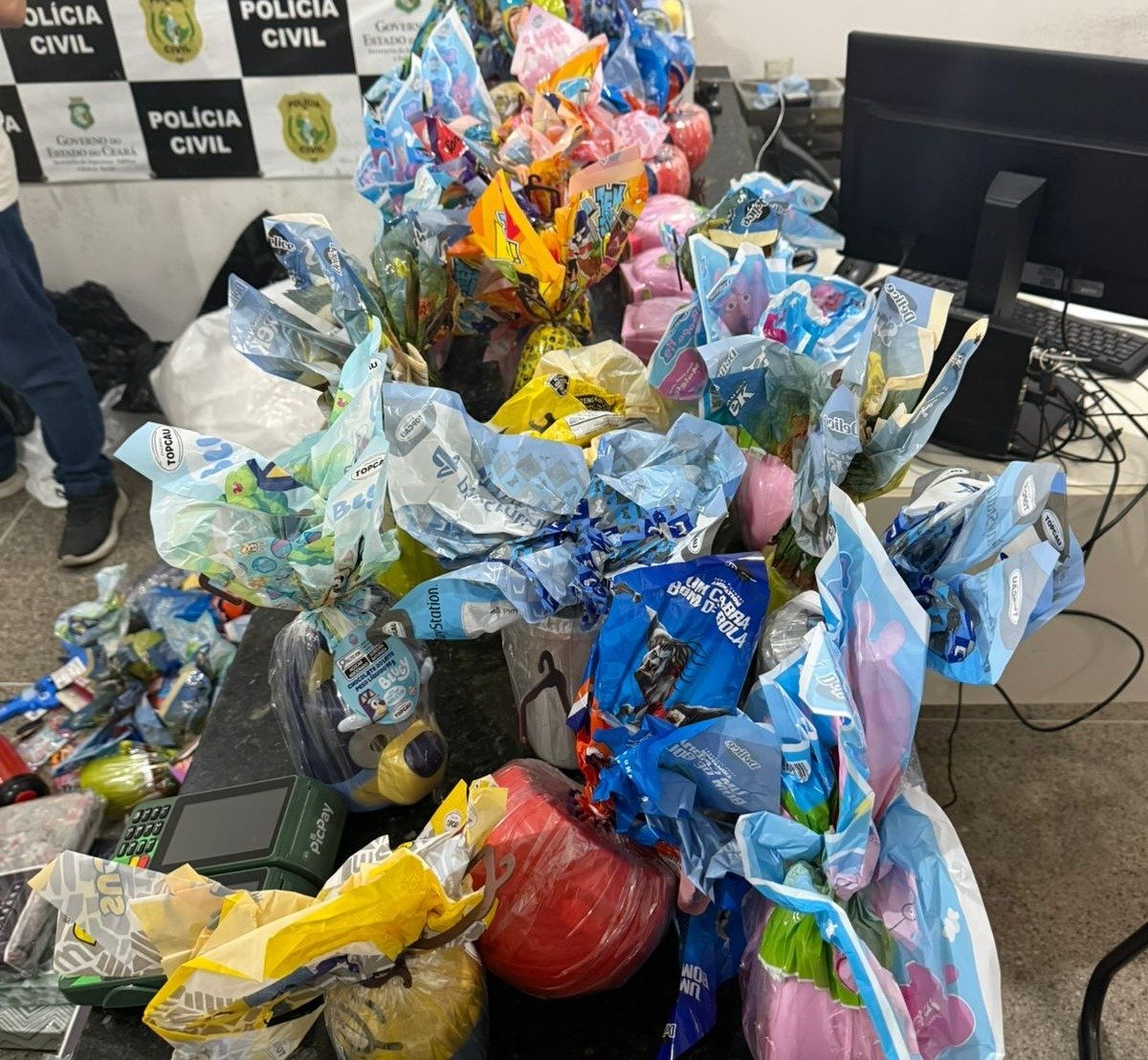 No total, foram apreendidos com o grupo 273 peças de lingerie feminina, 24 colchas de cama, 61 ovos de chocolate, oito isqueiros, duas mochilas, uma caixa térmica, duas maquinetas de cartão de crédito e cinco aparelhos celulares, além de brinquedos, joias e utensílios pessoais.