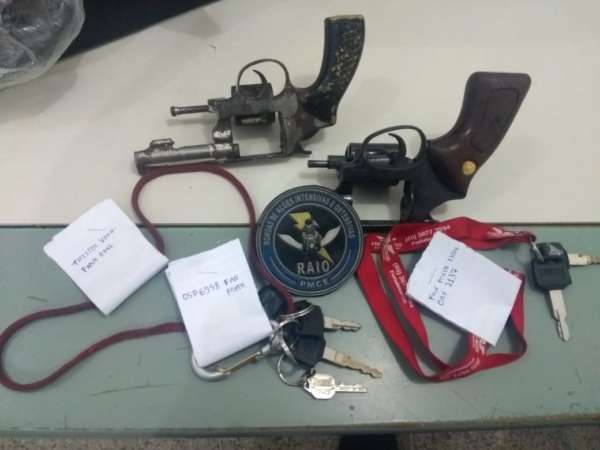 Após informes repassados pelos operadores da Ciops, que visualizaram a movimentação dos assaltantes pela região por meio do videomonitoramento, os “raianos” seguiram em diligências objetivando prender a dupla, que durante a realização dos roubos, chegou a efetuar um disparo de arma de fogo que atingiu um motoqueiro, figurando uma tentativa de latrocínio. Rapidamente, os militares localizaram os dois criminosos, que estavam em duas motos, sendo uma delas recém-roubada. Quando perceberam a aproximação do BPRaio, os infratores não reagiram e arremessaram as armas de fogo.