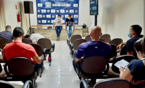 Comitê de enfrentamento à COVID-19 orienta profissionais de academias de Quixeramobim sobre a importância da prevenção ao vírus.