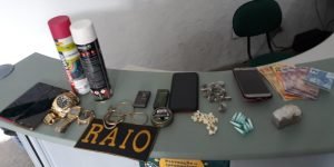 Após buscas, Wagner Mota Cavalcante (19), sem antecedentes; Gabriel Januário dos Santos Silva (21) e Isael Lucas Vieira Soares (22), ambos com passagens por tráfico de drogas, foram localizados no bairro Carrapicho. Durante a ofensiva, 57 gramas de maconha, 15 papelotes de maconha, nove ampolas de cocaína, 25 pedrinhas de crack, quatro aparelhos celulares, duas latas de tinta spray, relógios e uma quantia em dinheiro foram encontrados.