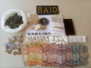Durante patrulhamento ostensivo pelas ruas do município, a composição do CPRaio tomou conhecimento que, próximo ao local onde estava, uma mulher estaria realizando o tráfico de drogas. De imediato, os policiais foram ao local para averiguar a informação. Os raianos observaram uma movimentação suspeita de pessoas e realizaram a abordagem. Uma mulher, identificada como Francisca Magila Monteiro dos Anjos (40), aparentava um certo nervosismo com a presença dos militares e, por isso, foi indagada sobre a prática ilegal. Durante os questionamentos, os PMs notaram que a suspeita estava com alguns objetos escondidos em sua blusa, que posteriormente foram identificados como sendo pequenas porções de crack, maconha e cocaína.