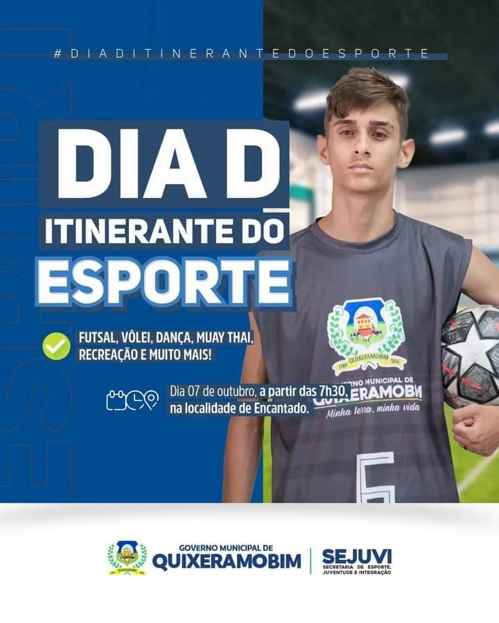 No Dia “D” Itinerante do Esporte, que acontecerá no dia 07 de Outubro, a partir das 7h30, na localidade de Encantado, teremos diversas atividades esportivas para todas as idades.