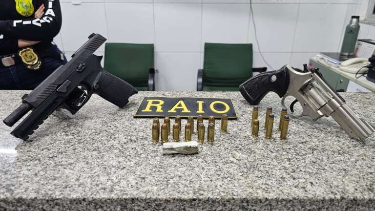 As equipes rapidamente se dirigiram ao local e realizaram um cerco. Dois indivíduos perceberam a presença policial e tentaram fugir em direção aos fundos do estabelecimento, sendo, porém, capturados pelos militares. Durante a tentativa de escapar, largaram duas armas, uma pistola calibre .40 e um revólver 357, as quais foram apreendidas. Com um dos abordados, os PM encontraram ainda 5,6 gramas de maconha em seu bolso.