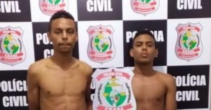 Dois homens com passagem por roubo e receptação foram capturados em uma ação conjunta de policiais militares da 2ª Companhia do 16º Batalhão de Polícia Militar (BPM) e de policiais civis do 30º Distrito Policial (Jangurussu). O fato aconteceu, nessa terça-feira (11), no bairro Conjunto Palmeiras, na Área Integrada de Segurança 3 (AIS 3). A dupla utilizou uma motocicleta roubada e um simulacro para cometer os roubos contra, pelo menos, quatro vítimas. O veículo, o simulacro de pistola, dois capacetes roubados e celulares foram apreendidos durante a ação policial. Fernando Silva de Sousa (19), com antecedentes por roubo e receptação, e Wilker Carlos de Freitas (22), com três passagens por roubo e uma por receptação, foram presos em flagrante e autuados por roubo majorado e por integrarem organização criminosa. Pela manhã, a dupla assaltou uma vítima com um simulacro de pistola e lhe tomou uma motocicleta, dois capacetes e pertences pessoais. Após praticar o roubo e levar os pertences da primeira vítima, os homens seguiram fazendo mais vítimas, no São Cristóvão. As diligências para capturar os suspeitos iniciaram com auxílio da Coordenadoria Integrada de Operações de Segurança (Ciops) da Secretaria da Segurança Pública e Defesa Social (SSPDS). De imediato, a Polícia Militar do Ceará (PMCE) iniciou os levantamentos para localizar os suspeitos. Wilker foi encontrado dentro de uma oficina mecânica, onde estava escondido. Próximo ao estabelecimento, os PMs encontraram os dois capacetes roubados da vítima. Conduzido ao 30º DP, o suspeito confessou o crime e indicou a localização da moto subtraída e do comparsa. Dando seguimento aos trabalhos, os policiais civis se dirigiram até a casa do segundo suspeito, que é irmão de Wilker. Dentro da residência, os policiais detiveram Fernando e acharam a chave da motocicleta e seguiram para o local onde o veículo foi abandonado, dentro de um matagal, próximo à barragem do Rio Cocó. Continuando a ação, os agentes foram até um local na Rua do Pensamento, onde o simulacro foi encontrado em um matagal, embaixo de algumas tábuas. Após todo o trabalho dos agentes de segurança para capturar a dupla e os objetos subtraídos, as vítimas compareceram à delegacia para registrar o fato e restituir os bens. A Polícia Civil mantém as investigações entorno da atuação dos suspeitos em outros delitos na região da AIS 3. Siga-nos e fique bem informado 👍 Siga nos #Instagram https://www.instagram.com/quixeramobim_alerta/ 👍 Curta nossa página no Facebook. https://www.facebook.com/Quixeramobimalerta/ Fonte: Polícia Civil.