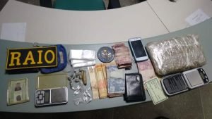 Após indagado sobre mais drogas o mesmo afirmou que teria outra quantidade na casa de Francisco Humberto da Silva Lopes, na avenida Zezé juca, onde foi encontrado um tablet de maconha ( 405 gramas) e uma balança e 140 reais em espécie.