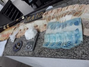 O dinheiro foi constatado e ao ir para essa outra casa citada pelo o mesmo foi encontrado uma parte da droga, uma balança de precisão, um caderno com a contabilidade do tráfico e uma espingarda de fabricação caseira. O mesmo também disse que a outra parte da droga ficava enterrada no quintal da casa, mas a equipe ao ir verificar percebeu-se que o parceiro do acusado já teria tirado a droga do local.