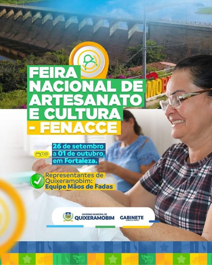 Quixeramobim estará presente na 5ª edição da Feira Nacional de Artesanato e Cultura – FENACCE, que acontecerá de 26 de setembro a 01 de outubro, em Fortaleza.