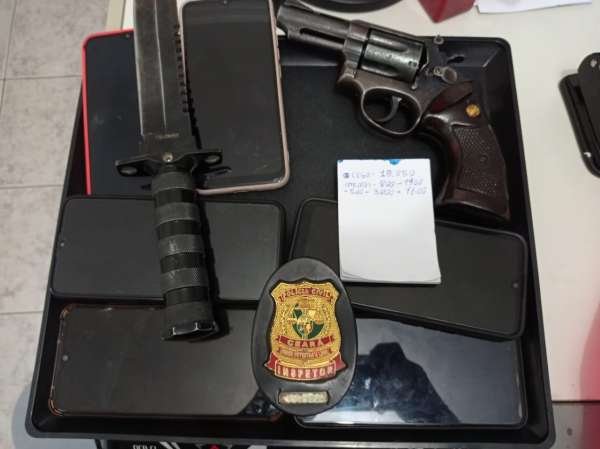 Em buscas realizadas no local, foram apreendidos também uma faca e seis celulares. Lucas Moreira de Araújo Paiva já responde por porte ilegal de arma de fogo. Os dois homens foram conduzidos à Delegacia Municipal de Horizonte para a adoção dos procedimentos cabíveis e estão à disposição da Justiça.