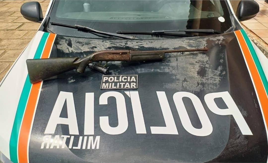 Os policiais se deslocaram até o ponto indicado e confirmaram a denúncia. Ao perceber a aproximação da viatura, o suspeito abandonou a arma no chão e fugiu em direção a uma área de mata.
