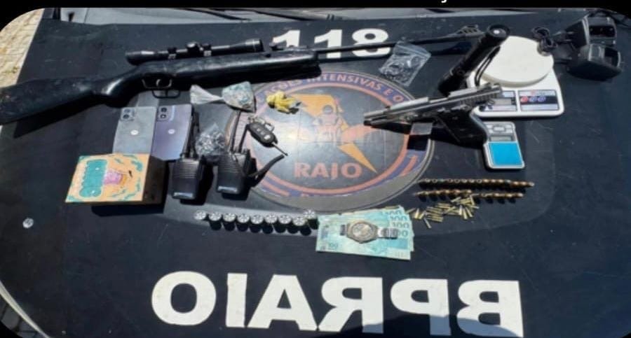 Uma ação do Batalhão de Policiamento de Rondas e Ações Intensivas e Ostensivas (BPRAIO) resultou na prisão de um homem por tráfico de drogas, porte ilegal de armas e tentativa de suborno, na manhã desta quarta-feira (8), na zona rural de Pedra Branca, no Sertão Central cearense.
