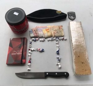 Indagado sobre a denúncia, o homem, identificado como Francisco Jardel de Sousa Ferreira (34), com passagens por furto, confessou que comercializava entorpecentes e informou aos policiais que o material estava dentro do imóvel. Então, os PMs seguiram até o local e fizeram buscas. Foram encontrados um tablete de maconha, pesando 750 gramas, 37 trouxinhas de cocaína, R$ 422,00 em espécie, um caderno com anotações sobre o tráfico e uma faca.