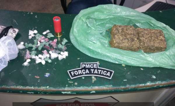 Uma ação rápida de patrulhamento ostensivo realizada pela equipe da Força Tática (FT), da Polícia Militar do Ceará (PMCE), resultou na prisão de um indivíduo suspeito de comercializar drogas. O fato se deu, na noite desse domingo (11), no conjunto habitacional Maria Tomásia, no bairro Jangurussu, na Área Integrada de Segurança 3 (AIS 3). Com o infrator, foram apreendidas drogas e munição de calibre 12.