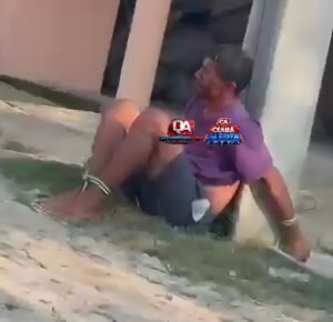 Ainda segundo relatos, moradores e familiares conseguiram localizar o suspeito em uma área de matagal nas proximidades da residência. Ele foi contido e amarrado a um poste até a chegada da polícia, acionada por volta das 4h20.