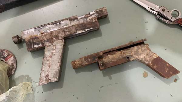 Chegando ao imóvel, os agentes localizaram Flávio e acharam vários materiais, como canos cortados, barras metálicas, furadeira, esmerilhadeira, saco de molas e outros apetrechos. Ainda na casa, foram encontrados um revólver calibre 38, munições de calibres 38, 40 e 380, além de outras armas artesanais. Todo o material foi recolhido e apresentado na sede do 30º DP, no bairro Jangurussu.