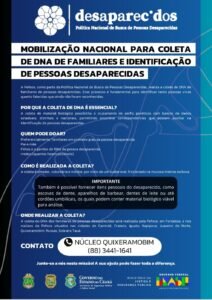 A Perícia Forense do Estado do Ceará (Pefoce) e a Polícia Civil do Estado do Ceará (PCCE), em parceria com o Ministério da Justiça e Segurança Pública (MJSP), deram início nesta segunda-feira (26) à Mobilização Nacional de Identificação e Busca de Pessoas Desaparecidas.