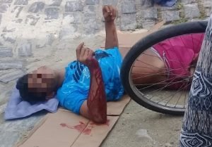 De imediato a composição policial compareceu ao local e acionou o SAMU que socorreu a vítima com 04 ferimentos, sendo 02 nas costas, 01 no braço direito e 01 de raspão no tórax, vale ressaltar que a equipe de socorristas encontrou nos bolsos da vítima 07 papelotes de maconha e 03 papelotes de material crack.