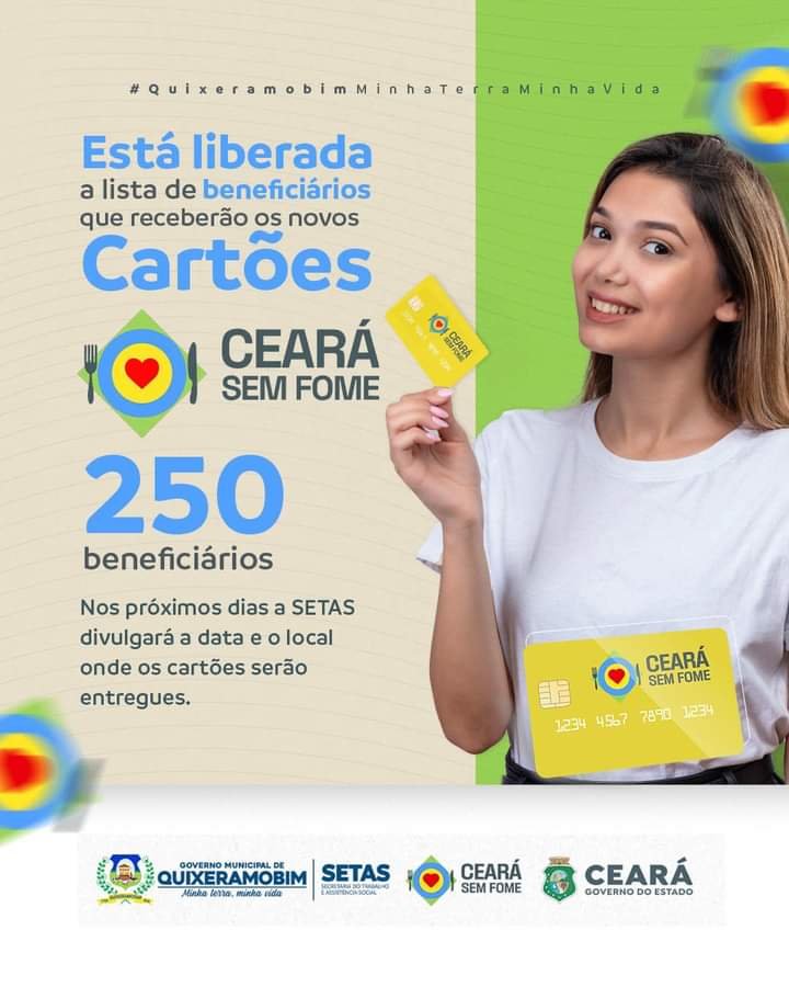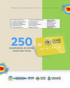 A lista dos beneficiários para os novos cartões do programa Ceará Sem Fome já está disponível. Em breve, compartilharemos detalhes sobre a data e local de entrega. Continuamos juntos na luta contra a fome e em prol da solidariedade.