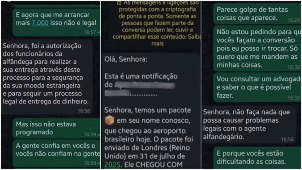 Para que o pacote chegasse até ela, porém, o golpista passou a exigir que a mulher efetuasse pagamentos de taxas e custos de transporte, alegando que eram necessários para a liberação do pacote. A vítima chegou a fazer os pagamentos e, só depois, percebeu que se tratava de um golpe.