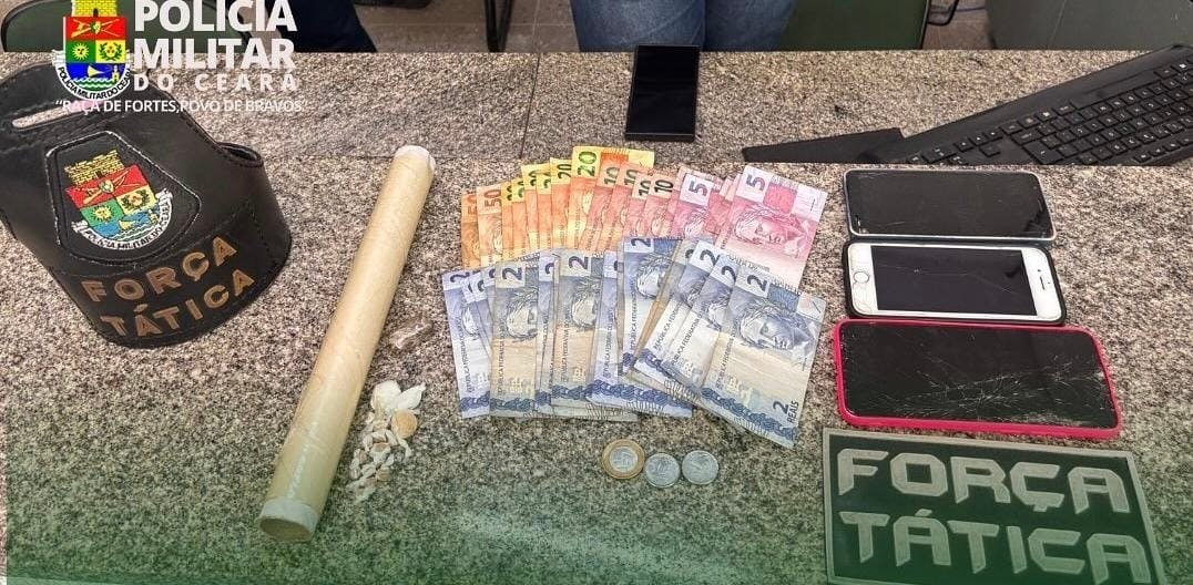 Ao chegar ao local, os policiais abordaram a suspeita, identificada pelas iniciais S.O.S., de 28 anos. Durante a busca, foram encontradas porções de crack, cocaína e maconha, além de três aparelhos celulares e R$ 335 em dinheiro.