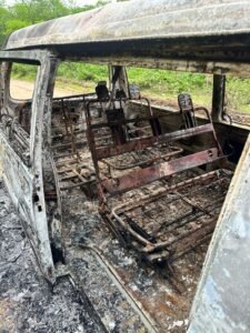 Um transporte escolar da Prefeitura de Senador Pompeu pegou fogo na manhã desta quinta-feira, 12 de fevereiro, durante o trajeto que liga a comunidade de Situação ao distrito de Codiá.