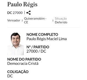 Natural de Quixeramobim, Paulo Regis também foi candidato a vereador pelo partido Democracia Cristã (DC). Além disso, ele já havia sido indiciado pela Polícia Civil após agredir verbalmente e empurrar um médico e um técnico de enfermagem na Unidade de Pronto Atendimento (UPA) de Quixeramobim.