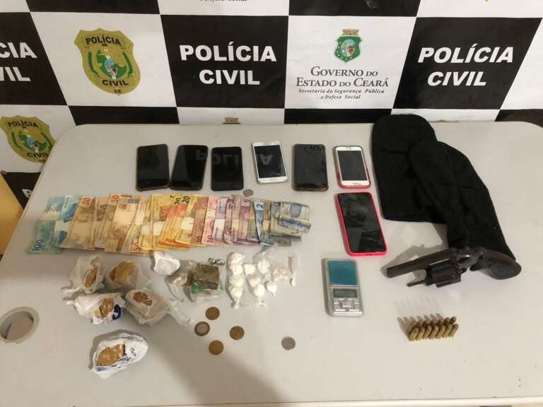 Dois irmãos foram presos em flagrante pela Polícia Civil do Estado do Ceará (PC-CE) na cidade de Aracati. Com os dois, os policiais civis encontraram drogas, aves, celulares e um revólver.